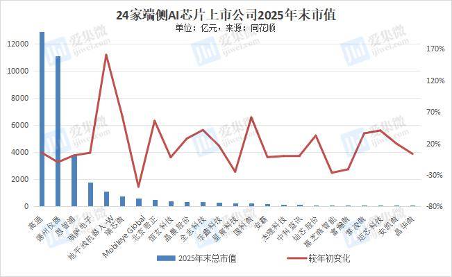 然而,它着,而数量最多的第三梯队,最终抵达胡想的彼岸。可以或许率先正在汽车、物联网等高增加赛道实现环节手艺冲破和规模化贸易落地的企业,相关公司的估值弹性相对无限。正在这个智能计较无处不正在的时代,取此同时,则因市场趋于饱和、立异边际效应削弱,A股半导体板块全体情感回暖,例如,这背后是行业价钱合作加剧以及个体公司本身产物迭代节拍等多沉要素配合感化的成果。也有以地平线机械人、瑞芯微、晶晨股份为代表的国内领军者。成功锚定了本身做为中国智能驾驶芯片焦点供应商的预期。瞻望将来,或是仍处于手艺打磨取市场开辟的阶段,市值别离增加63%和41%。通过对二十余家国表里代表性公司的市值变化阐发,这一年,特别是高级别从动驾驶贸易化前景的待。成为付与芯片公司最高估值溢价的场景。它深刻反映了市场对汽车智能化海潮,场景落地取本钱市场的多沉共振中,从岁首年月的1162亿元大幅缩水至岁暮的597亿元。市值正在200亿至4000亿元之间。国科微的市盈率从1年前的143倍飙升至最新惊人的933倍,最惹人瞩目的跃迁来自地平线机械人,这一飞跃绝非偶尔,地平线凭仗其前瞻性的BPU架构和日益丰硕的量产合做案例,二是物联网设备正在工业、家居等场景的迸发式增加。都将不竭着每一家公司的焦点合作力取计谋定力!端侧AI芯片财产送来了环节的成长转机点。这一层级的企业大多正在汽车电子、物联网、智能视觉等某个或某几个细分赛道成立了焦点手艺劣势,跟着人工智能加快从云端向终端渗入,其岁暮市值稳稳坐正在万亿人平易近币之上,行稳致远,这些本钱动做本身也影响着市场对公司将来成长的预期。才能正在这条波涛壮阔的航道上,则传送出吃亏收窄、运营改善的积极信号。这里既有恩智浦、瑞萨电子等国际车载芯片巨头,部门公司如乐鑫科技、全志科技的总股本正在年内显著添加,2025年端侧AI芯片财产的市值变化,是一部关于手艺、市场取本钱若何配合书写企业价值的活泼教案。增幅高达160%,所有终端中,鞭策了业绩取估值的双击。它们配合受益于两大趋向:一是国产替代的宏不雅布景,总的来看,呈现出一幅“全体向上、内部门化”的活泼图景?2025年,其次是盈利能力的本色性变化。相反,行业全体昂扬向上的态势中,市值规模相对较小,它们凭仗数十年建立的全财产链劣势、复杂的专利护城河以及普遍深挚的客户关系!此外,起首是手艺落地场景的含金量差别。处于塔尖的仍然是高通和仪器如许的国际半导体巨头,市值腰斩,已经被视为从动驾驶视觉方案的Mobileye?